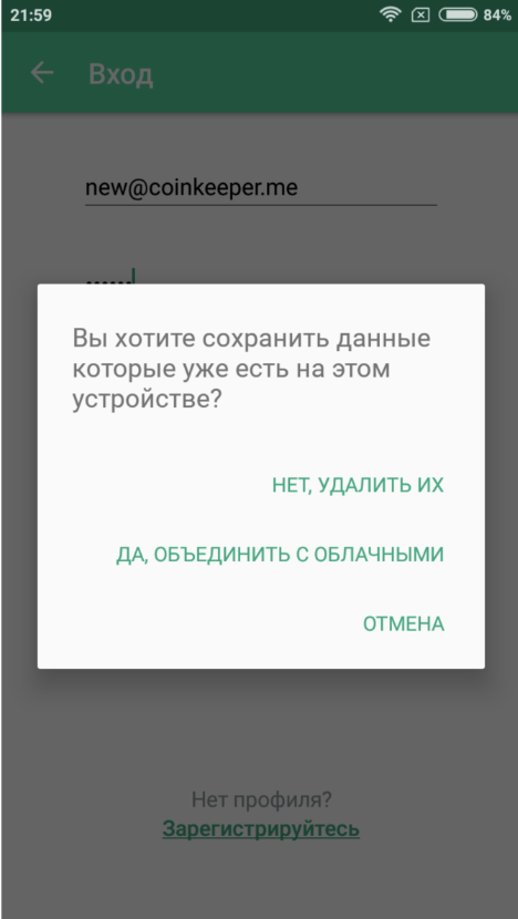 Ошибка “Такого email не существует”.- Если приложение сообщает, что “Такого email не существует”, убедитесь, что вы регистрировались в CoinKeeper именно с этим email’ом. Попробуйте войти в аккаунт, используя другие Вашими существующими email-адреса.