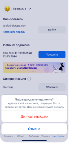 Если Вы приглашённый гость в профиле Хозяина, то удалить профиль нельзя, только выйти из него. Для этого тапните на шестерёнку “Профиль”, затем «Выйти из этого профиля».