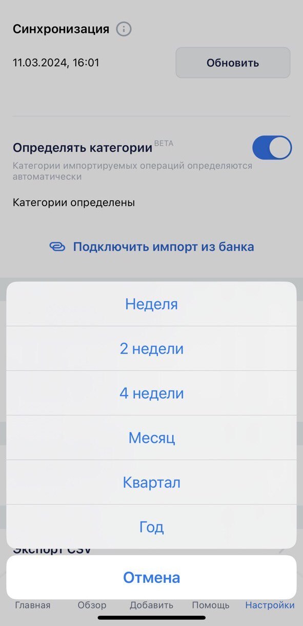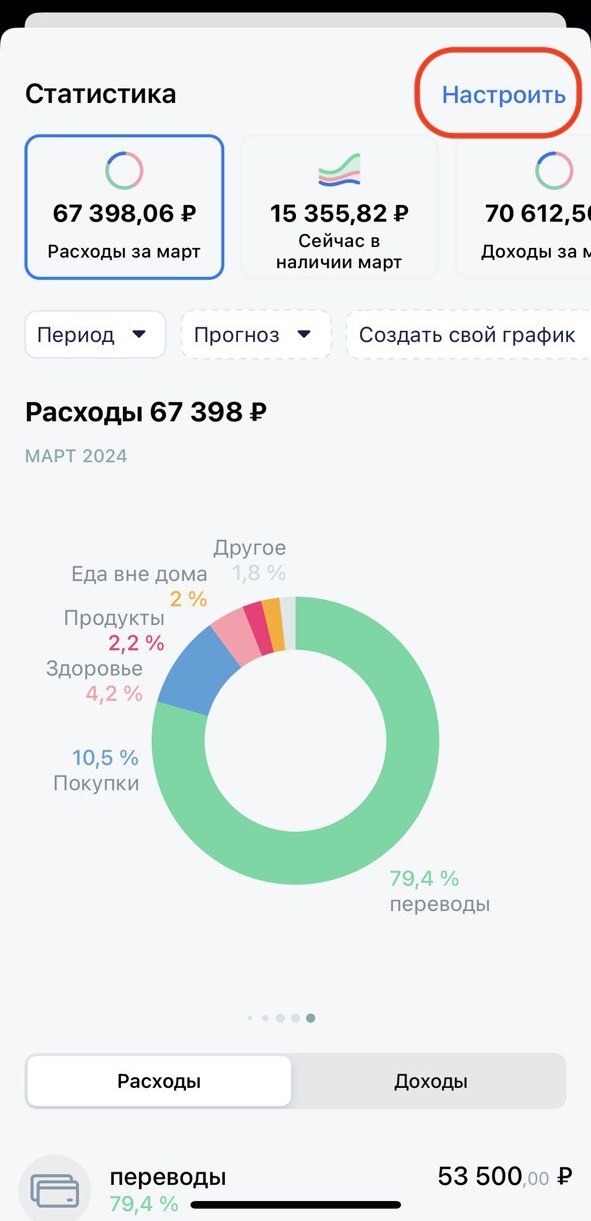 Статистика в приложении отображается по Периоду бюджетирования.