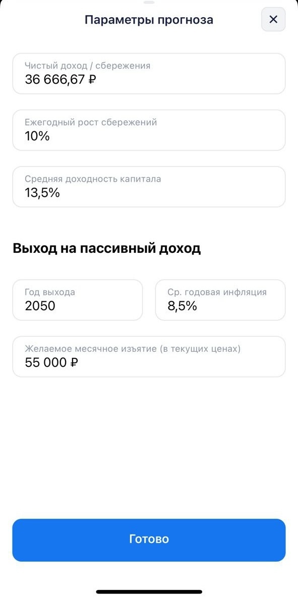 Прогноз – активация функции автоматического расчета будущего капитала.