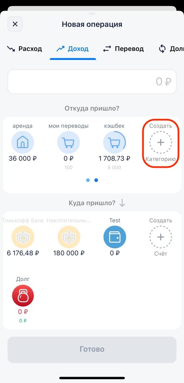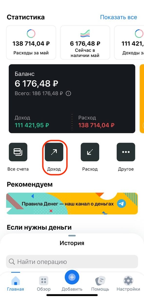 При этом удалится иконка источника дохода из поля доходов, операции останутся в истории.