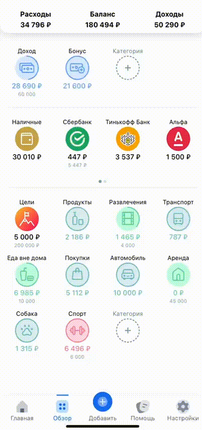 1. На "Обзоре" нажмите на заголовок "Расходы"